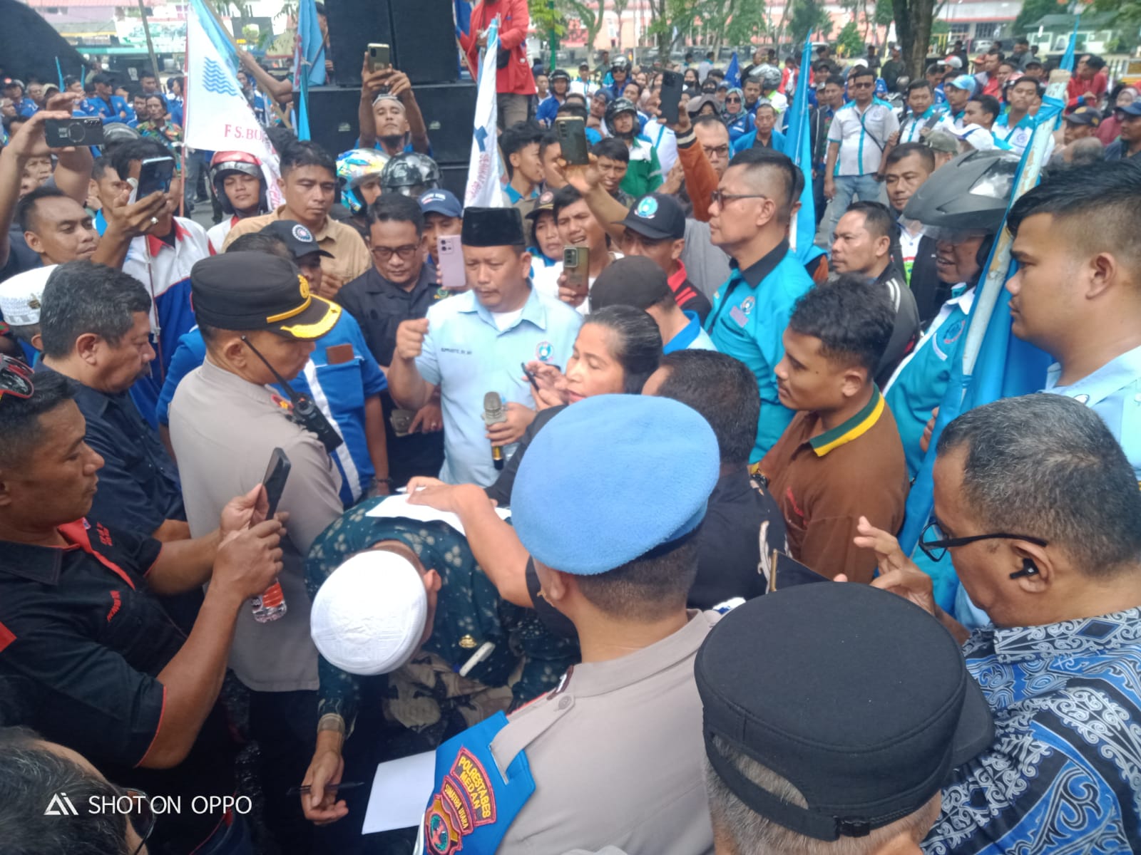 Multi Proakrif. Com – Medan – Ratusan buruh yang bergabung dalam Gabungan Pekerja Buruh Bergerak pada Kamis, 16 Oktober 2025 berunjuk rasa di depan Kantor DPRD Sumatera Utara Jalan Imam Bonjol Kota Medan menuntut penghapusan PPH pasal 21 dan menuntut DPR RI segera mensahkan UU Perampasan Aset bagi anggota Dewan yang melakukan korupsi.