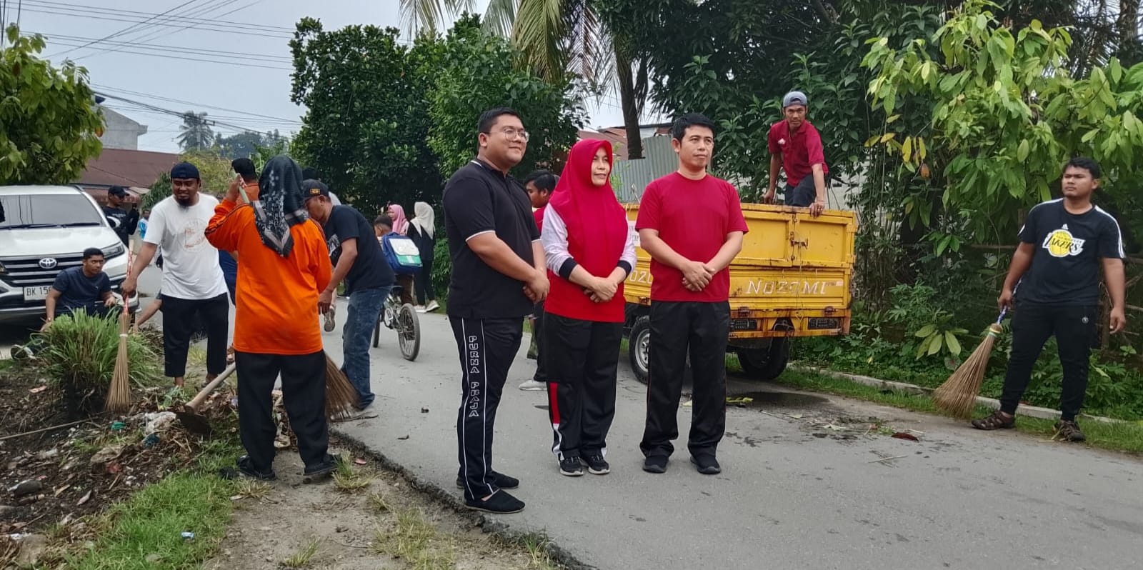 Aksi gotongroyong dari Dinas Kominfostan Kabupaten Deliserdang diwakili Sekretaris Dinas Kominfostan, Julyatin SE MSi dan dipusatkan di Dusun VIII, Desa Dalu Sepuluh B, Kecamatan Tanjungmorawa.