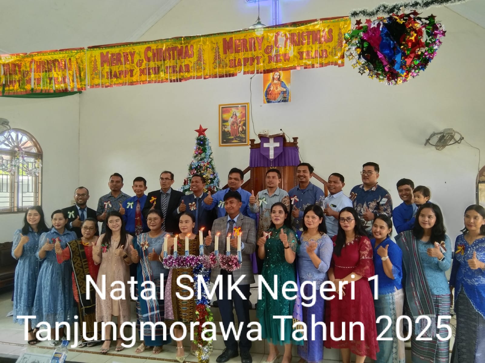 Keluarga besar SMK Negeri 1 Tanjungmorawa yang tergabung didalam umat Kristiani, seperti; para guru, pegawai dan siswa-siswi terlihat penuh sukacita dan hikmat mengikuti acara natal.