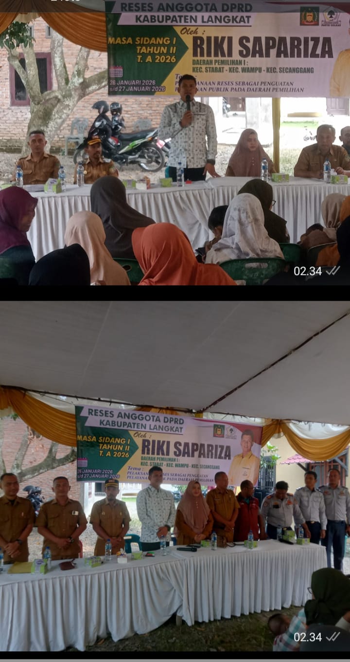 Riki Sapariza menyampaikan, reses ini adalah ajang untuk silaturahmi serta upaya dalam menyerap aspirasi dari masyarakat yang berada Dapil ,(I)kecamatan Stabat,Kecamatan Sicanggang,kecamatan Wampu.