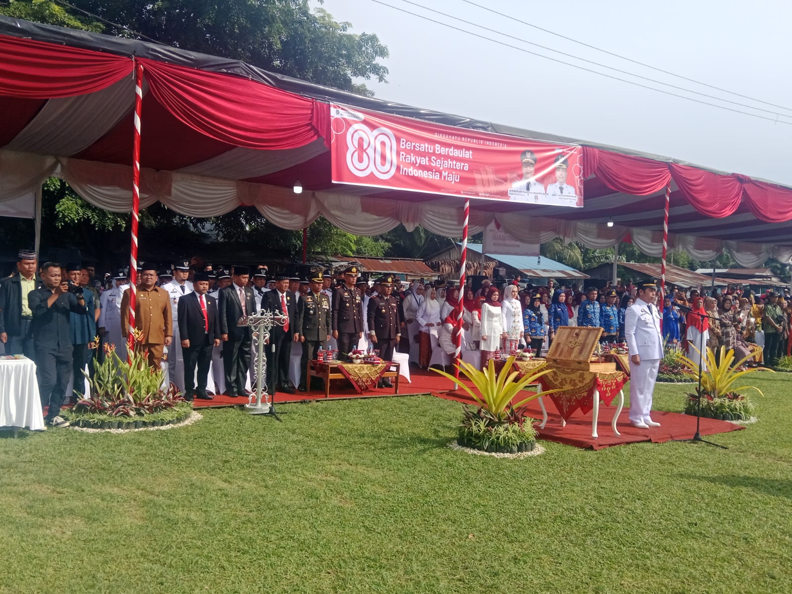 Upacara berlangsung khidmat dipimpin Camat Tanjungmorawa, Gontar Panjaitan SSTP bertindak sebagai Inspektur Upacara. Sementara itu, Iptu Indra Sihite, Wadanki II Kompi 2 Batalyon A Pelopor Brimob Polda Sumut, dipercaya sebagai Perwira Upacara, dan Iptu M Sapran, Danton III Kompi 2 Batalyon A Pelopor Brimob Polda Sumut, menjadi Komandan Upacara.
